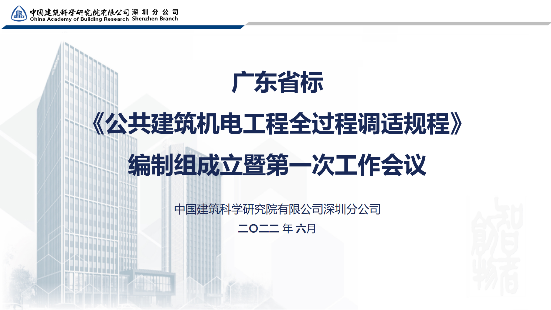 隨后,《調(diào)適規(guī)程》編制組召開了第一次工作會(huì)議。中國建研院深圳分公司對(duì)《調(diào)適規(guī)程》編制背景、工作基礎(chǔ)、大綱、分工和計(jì)劃等進(jìn)行了詳細(xì)匯報(bào),與會(huì)專家就上述內(nèi)容進(jìn)行了廣泛深入的討論并達(dá)成一致意見。根據(jù)工作計(jì)劃,編制組預(yù)計(jì)于2022年10月完成征求意見稿編制,預(yù)計(jì)于2023年3月提交報(bào)批稿。