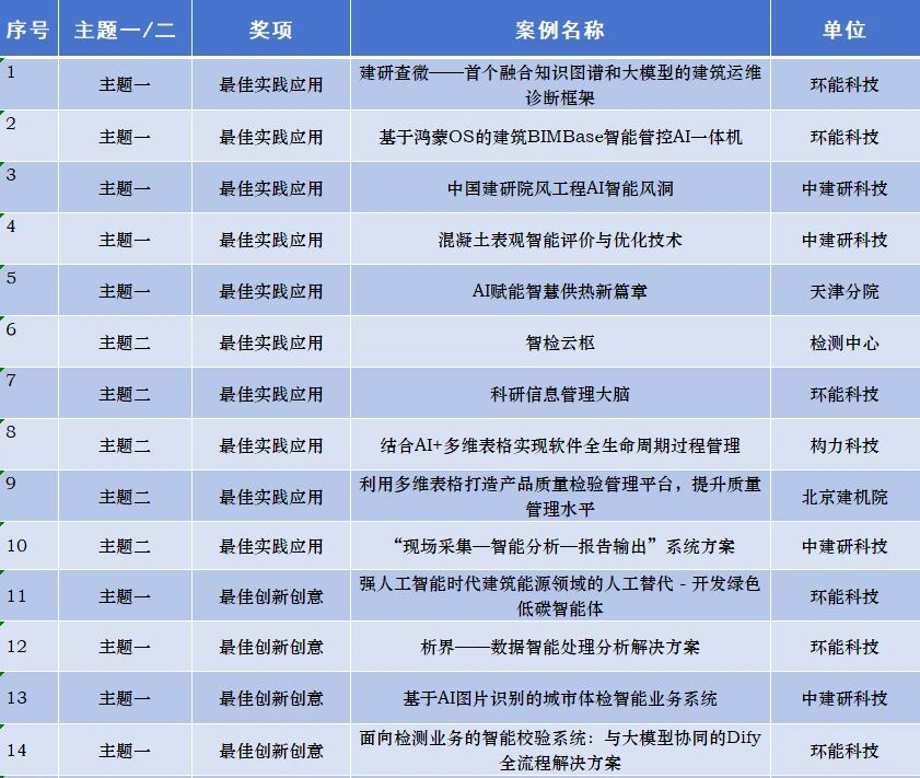 ?首屆“建研青創杯”AI實踐大賽自3月初啟動以來,共500余名職工報名參賽,收集到71組AI實踐案例,其中主題一(挖掘AI應用場景)38組、主題二(打造企業級智能體)33組,案例整體質量高、突顯行業特色、解決實際問題。 經專家評審組打分和大眾評委投票,結合綜合評分、專項評分,按排名篩選出最佳實踐應用、最佳創新創意、最佳視覺呈現、優秀入圍作品等40組獲獎組。 大賽期間,中國建研院團委和數字化管理部還圍繞AI通識教育、AI技術應用、企業級智能體打造等主題累計開展培訓9場,線上線下參與近600人次,活動受到廣大干部職工的廣泛關注和熱情參與。深圳分公司兩個作品“業財一體化系統知識庫”、“基于人工智能大模型的科學技術獎勵輔助申報智能體設計與應用探索”成功入圍,分別獲得最佳視覺呈現獎、優秀入圍作品獎。